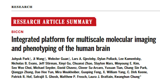 We are thrilled to announce that Juhyuk Park’s paper, "Integrated platform for multiscale molecular imaging and phenotyping of the human brain” has been published in Science Magazine.